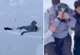 【閲覧注意】スキー場で「可愛い~!」と猛獣に近付いた女性、顔面崩壊させられる(動画あり)